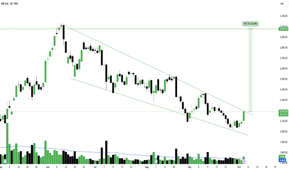 Breakout from Falling Channel with Strong Reversal in BSE Ltd