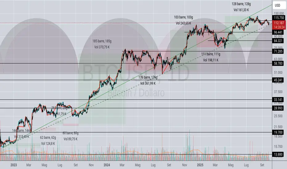 Sul grafico ci sono due trendline, una che è diventata una resistenza perfetta e quella che stiamo tenendo d'occhio che fa da supporto, il prezzo ha oscillato per mesi in mezzo a queste due linee e ha rimbalzato a ogni test fatto, la volta che bucherà una di loro avremo un nuovo movimento importante. Speriamo sia quella superiore, anche se il fatto di averla testata adesso con i segnali che il prezzo sta mostrando, non è una buona notizia per i rialzisti questa. Per adesso ha rimbalzato ma se la bucasse potrebbe partire un movimento ribassista molto potente, dato che è una trendline molto rispettata e di lungo periodo.