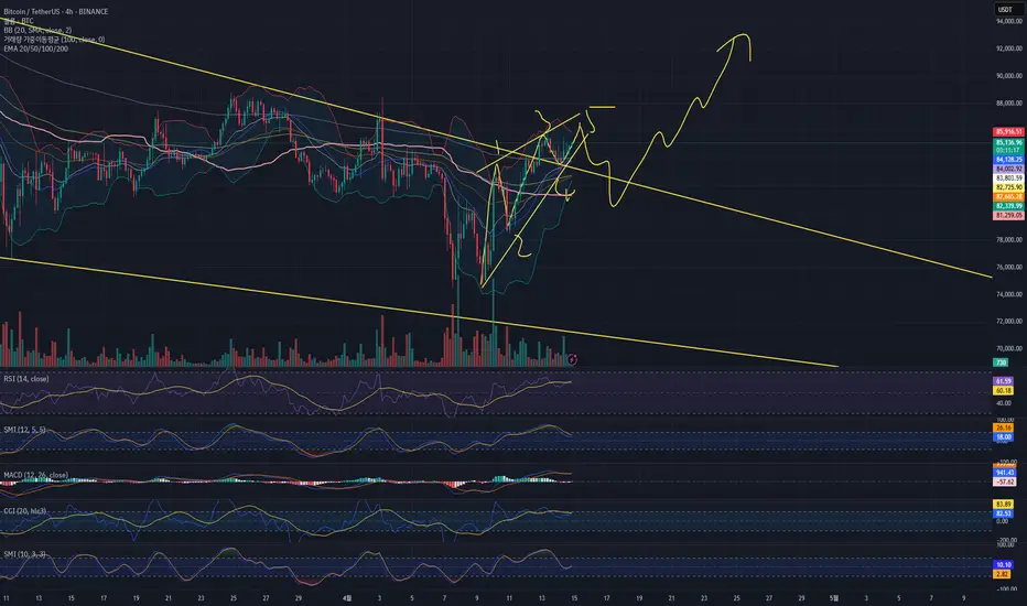 만일 여기서 그냥 쭉~ 이렇게 상승이 나온다고해도 88.7을 쉽게 한번에 뚫기는 어렵지 않을까 보고 있습니다.