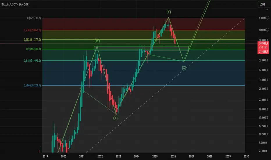 BTC 71,300$ seviyelerinden işlem görmeye devam etmektedir. Aylık periyotta incelediğimizde Elliot dalgasının dördüncü dalga düzeltmesi olduğunu söyleye biliriz. Her nek adar haftalık trend boyu aşağı yönlü satış baskısı ile devam etse de genel olarak kısmı tepki alımlarının geldiğini görüyoruz. 69.000 3.dalga zirvesinin altında düşmedikçe aylık periyotta BTC için yönün yukarı olduğunu genel grafik üzerinde dördüncü dalgasının düzeltmesini tamamlaması ile yukarı yönlü fiyat ve tepki alımlarının geleceği kanaatindeyim.