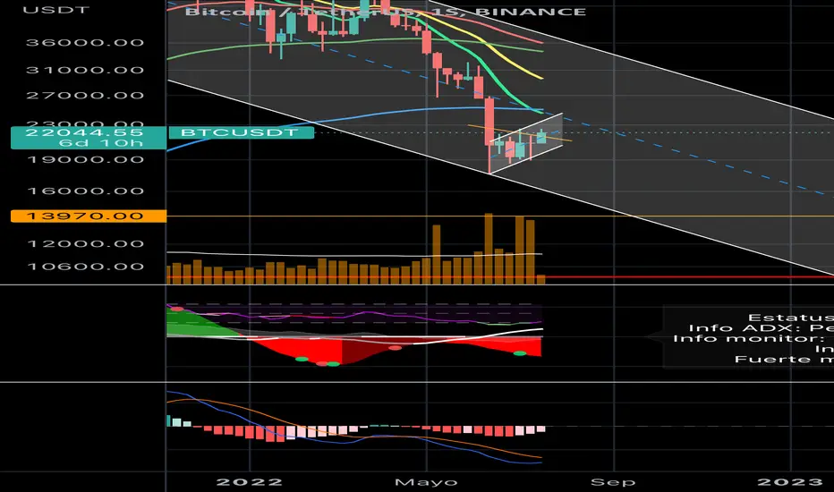 BTC #Bitcoin en semanal aún con fuerza bajista pero va a ir perdiendo fuerza y de a poco va teniendo divergencias alcistas en su precio y empieza a aparecer volumen de compras interesantes. De mediano plazo próx movimiento 23-25K y será en principio para seguir 📉