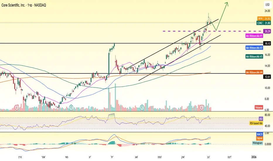 המומנטום של Core Scientific ממשיך להיות חזק: המניה נסחרת בכ־22% מעל הממוצע שלה ל־50 הימים האחרונים וזה סימן לכך שהשוק אופטימי לגביה.