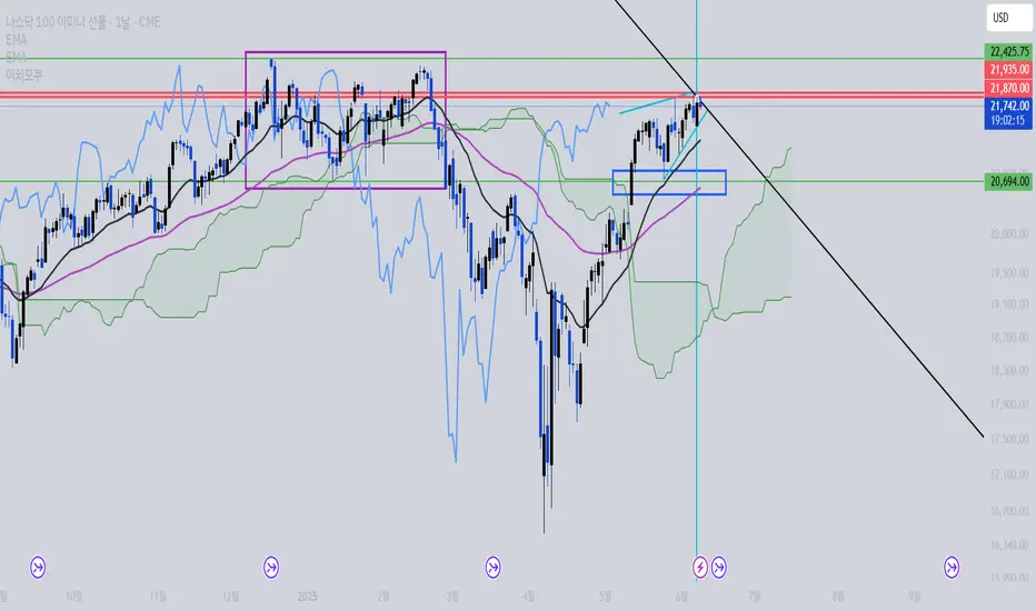 6월 10일 기준, 나스닥 차트를 기반으로 주요 흐름과 전략적 시나리오를 분석하였습니다.
