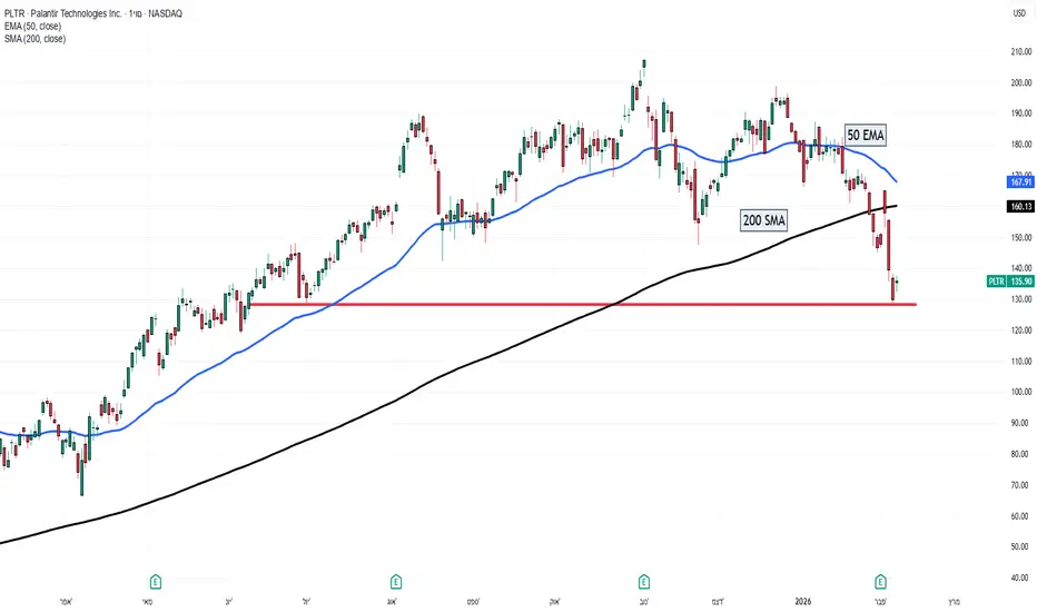 פלנטיר לא פתחה את שנת 2026 באופן חיובי, אחרי שב3 השנים האחרונות המניה עלתה בלמעלה מ1550%! מניית פלנטיר צנחה בחודש האחרון בלמעלה מ25%! מטווח מחירי ה $200+- לטווח מחירי ה $130-$150.