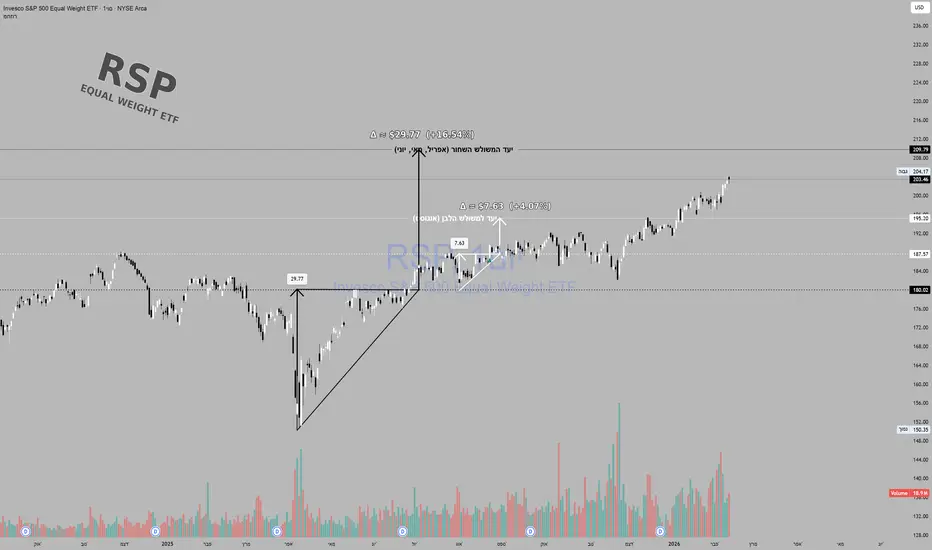 חצי שנה עברה מאז שפרסמתי כאן את ניתוח הפריצה של ה-RSP (מדד S&P 500 במשקל שווה). מעניין לראות איך הנתונים הטכניים התגבשו למציאות בשטח: