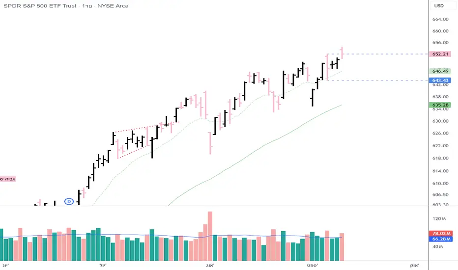 בגרף ה־SPY רואים רצף של ATHs - כל כמה ימים שיא חדש.