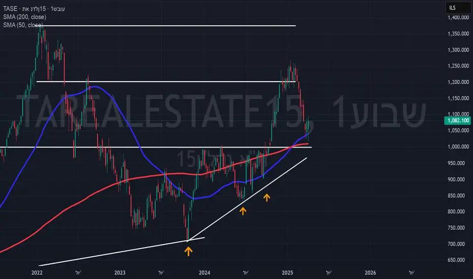 לפני מספר חודשים היה לנו עסקה מעניינת ללונג על מדד הנדל"ן ומהרגע שהוא הגיע לאזור התנגדות במחיר של 1,200 הוא החל תיקון.