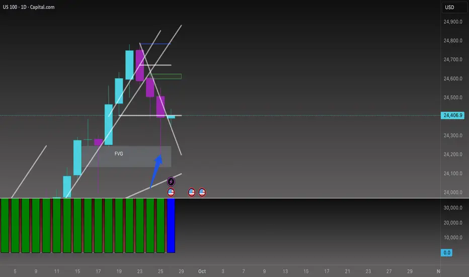 👉 If sellers take control and push price below the trend, we could see a move down toward the FVG region at 24,340.