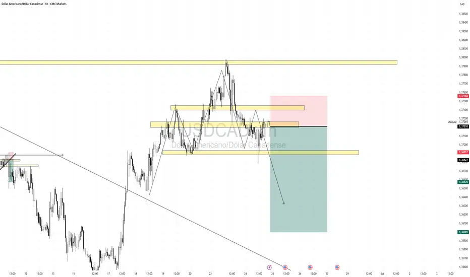 Vamos pra mais uma analise swing. Possivel venda nesse par Usdcad antecipando uma movimentação grande e também uma figura gráfica conhecida como OCO - Ombro cabeça ombro, o comércio também pode ser ativado após o rompimento de fundo na região do 1.36884