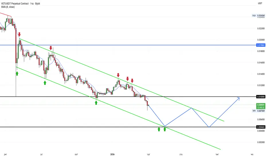 המטבע VET נסחר מחודש אוקטובר 25 בתעלה יורדת עם נגיעות מדוייקות בקווי התעלה כשכל נגיעה מובילה למהלך.