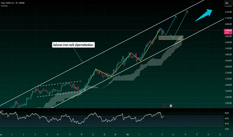 Konfluensi di sekitar $3.950 (pertemuan awan Ichimoku dan garis tren) bertindak sebagai support dinamis yang penting, menciptakan fondasi untuk kenaikan lebih lanjut.