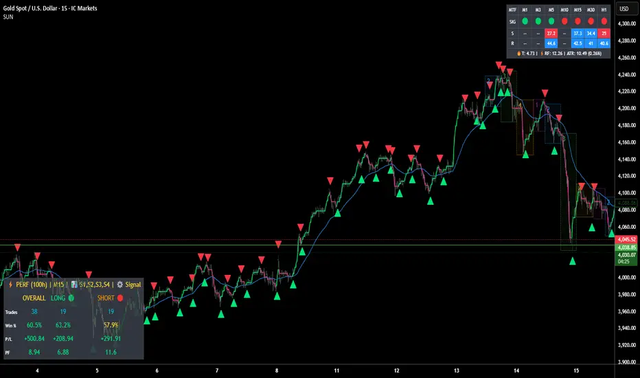 📈 SUN Signal System is highly effective across a wide range of market conditions, excelling in both trending and range-bound environments. It serves as a powerful tool for scalping and optimizing trade entries on shorter time frames, while also delivering performance for swing trading strategies.