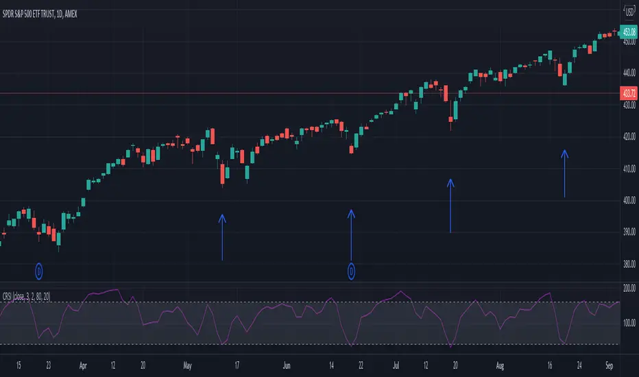 How it works: This indicator sums the past X periods of the Relative Strength Index, and plots this "cumulative" measure of the RSI. Since the cumulation changes the score scale, the upper and lower bands are dynamic based on how many bars back you are summing for the cumulation. The upper and lower bands are adjustable with an input, along with the RSI length and cumulation period.