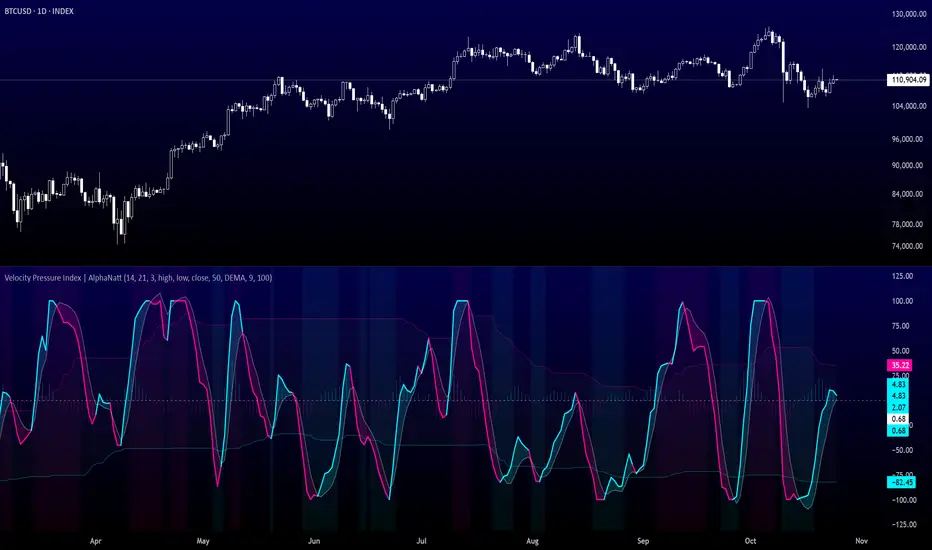 A sophisticated momentum oscillator that combines price velocity analysis with volume pressure dynamics to identify high-probability trading opportunities.