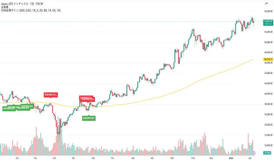 このインジケーターは、長期トレンドにおける「押し目買い」と「戻り売り」を的確に捉えるためのトレンドフォローツールです。EMA200をトレンドの基準(壁)とし、オシレーターで反発のタイミングを計ります。