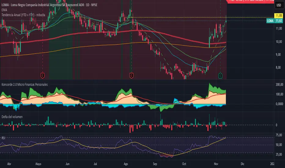 This indicator displays annual performance metrics including YTD (Year-To-Date) and YTY (Year-To-Year) returns based on daily prices. It also plots long and short EMAs to highlight market trends, offering a clear view of yearly momentum and crossover signals for strategic trading decisions.