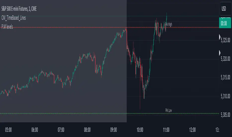 This indicator draws the Pre-Market Low and High for futures. Futures do not really have "P.M" because they are almost always open, but I chart /ES and trade