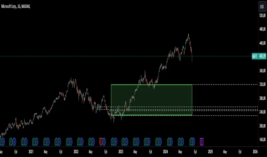 A dynamic rectangle is drawn between the last two entry prices, which extends to the right until the specified conditions are met. The rectangle's color changes from red to green if the price crosses above it by at least one bar, indicating a potential support zone.