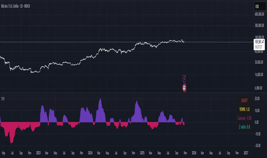 The Trend Following Reflectometry (TFR) indicator translates market behavior into the language of impedance and signal reflection theory, providing a unique way to measure trend strength, stability, and purity.