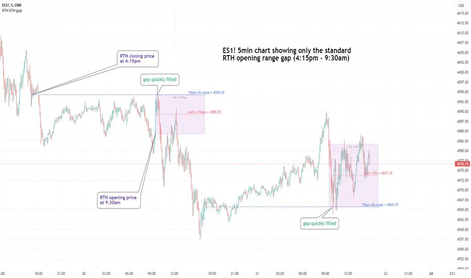 -Shows the gap between 4pm close and 9:30am open; the Regular trading hours Vs Electronic trading hours Gap (RTH vs ETH).