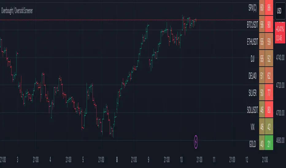 **Unlock a wealth of trading opportunities with this customizable screener, designed to pinpoint potential overbought and oversold conditions across 17 symbols, with alert support!**