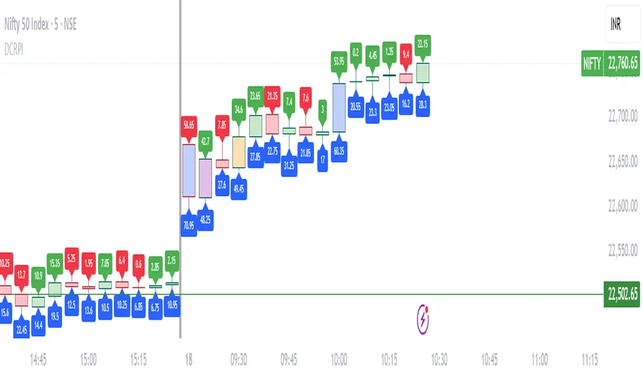 The "Dynamic Candle Range Point Indicator" (DCRPI) does two important jobs at once. For each candle on your chart, it shows you exactly how many points the price moved in two different ways: