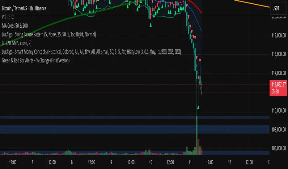 This indicator identifies when a bar (candle) closes green or red and provides visual markers plus alert notifications.