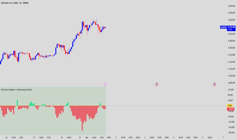 This indicator is designed to measure the true macro environment behind gold (XAUUSD) and identify when price is aligned with macro flows or mispriced relative to them.