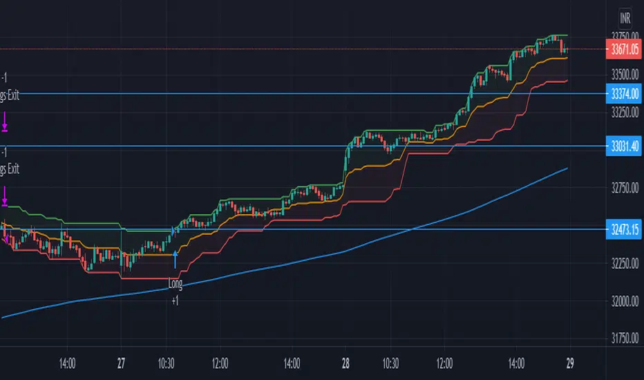 Ride the trend with full potential. Filter out false signals using long period ema. Lower bands take care of the stop loss.