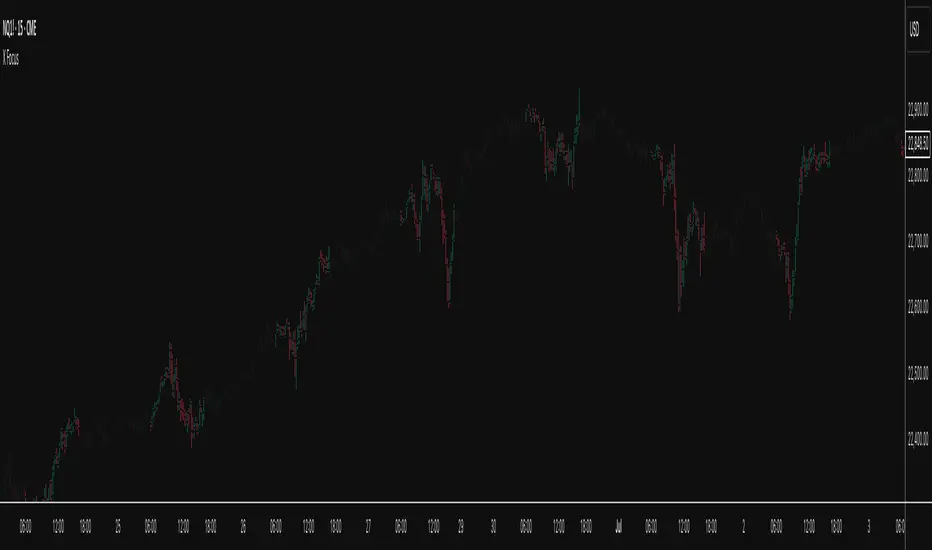 The primary goal of this indicator is to combat the “noise” that often arises during certain periods, such as overnight sessions or pre-market trading. By visually softening those areas, traders can focus on the more relevant trading windows WITHOUT losing any time-based context. Unlike traditional tools that remove data entirely, X Focus preserves all candlestick and price information—ensuring that key levels, gaps, or reference values are still visible.