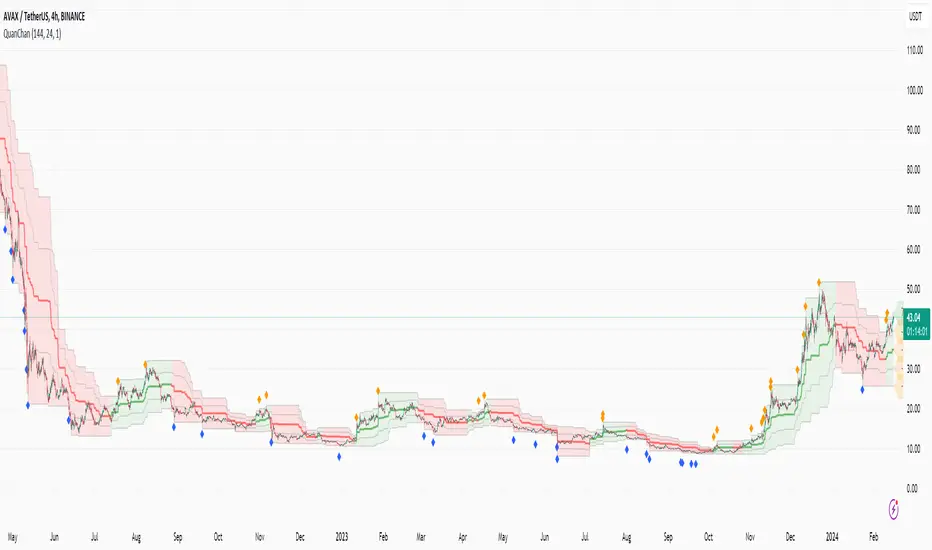 Personally, I like to use another oscillator in combination with this channel to predict whether it will reverse after the breakouts or continue to make another peak. If you are a DCA or long-term investor, I guess it would be safe to buy at the blue signals (out of bottom) and take some profits at the orange signals (out of top).