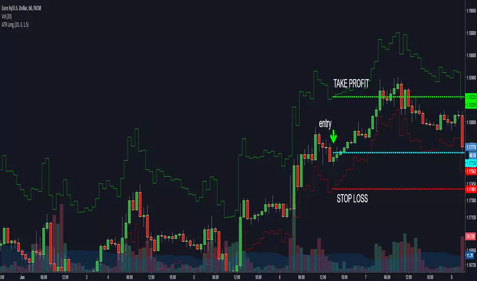 This script was made to calculate in real time the stop and take profit based on ATR to LONG positions. By default, the number is 1,5 ATR to stop-loss and 3 ATR to take profit. You can change according to your trading system.