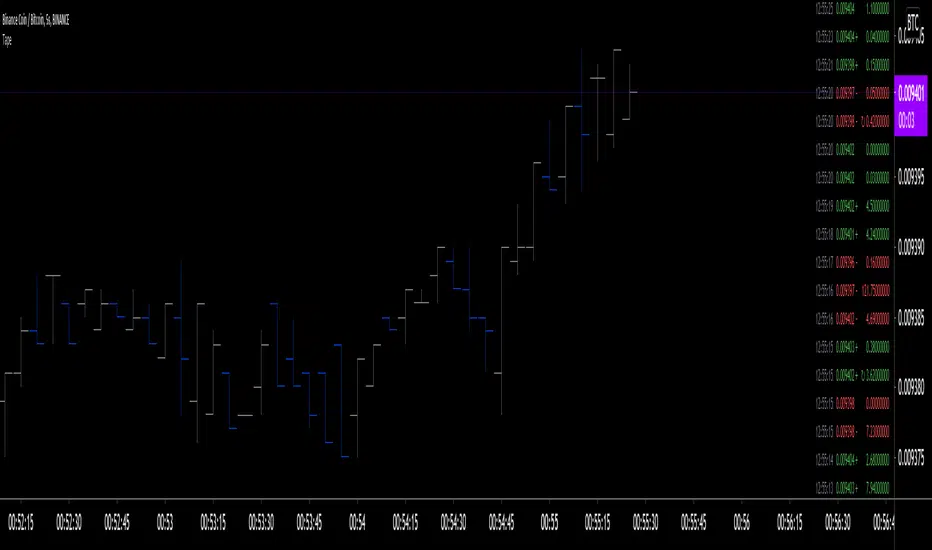 • This version of the script uses the new tables feature in Pine to display the tape. It makes for a much more flexible display,