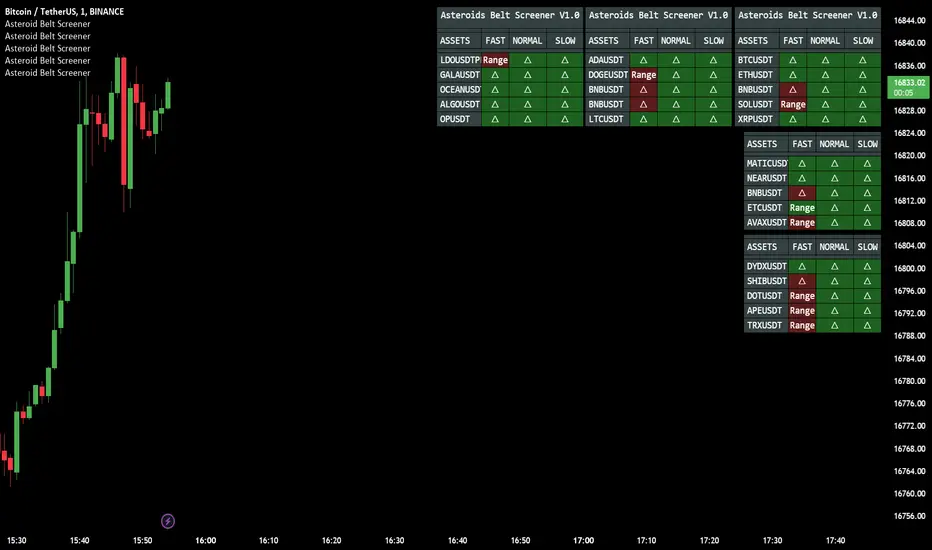 Using the custom position coordinates X,Y users can load multiple instances of the screener, choose individual assets, place them on their chart as they wish and scan for 5 assets PER screener.