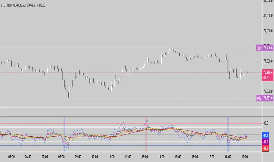 Combines short, mid, and long RSI to give a layered view of market strength and potential turning points.