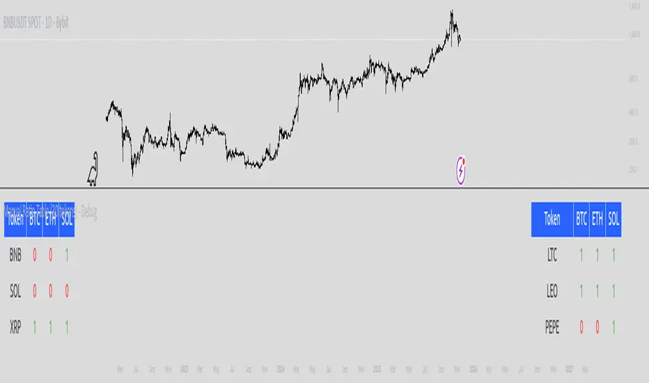 This indicator compares the relative strength of 30 selected cryptocurrencies against three major benchmark assets — BTC, ETH, and SOL — using a ratio-based RSI system.