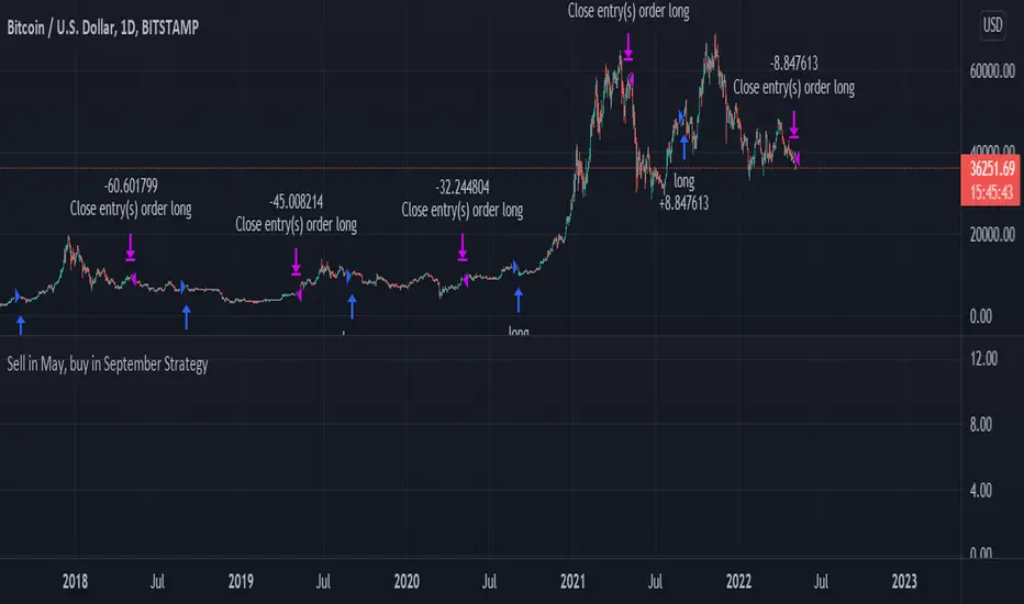 This script applies the classic traders mantra of "Sell in May, buy in September". Not much else to it to be honest. Seems to work though :-).