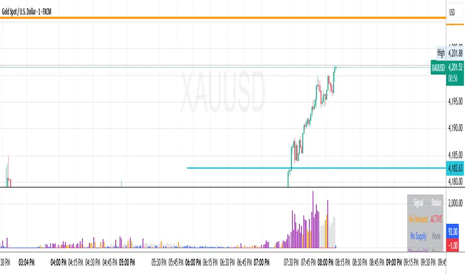 This script is designed to identify meaningful volume activity using the principles of Volume Spread Analysis (VSA). By focusing on the relationship between price movement and volume, it highlights areas where professional traders may be active. The tool becomes especially powerful when applied to higher timeframes such as 15-minute or 30-minute charts. On these larger intervals, market noise is reduced, allowing true supply and demand imbalances to stand out more clearly. As a result, the zones and signals generated by the script tend to be more reliable and consistent. The combination of structural analysis and volume behaviour helps traders pinpoint potential trend reversals, continuation patterns, and breakout strength with greater accuracy. Overall, this script enhances decision-making by offering a clearer view of genuine market participation, making it well-suited for swing traders, intraday strategists, and anyone looking to understand volume dynamics more effectively.