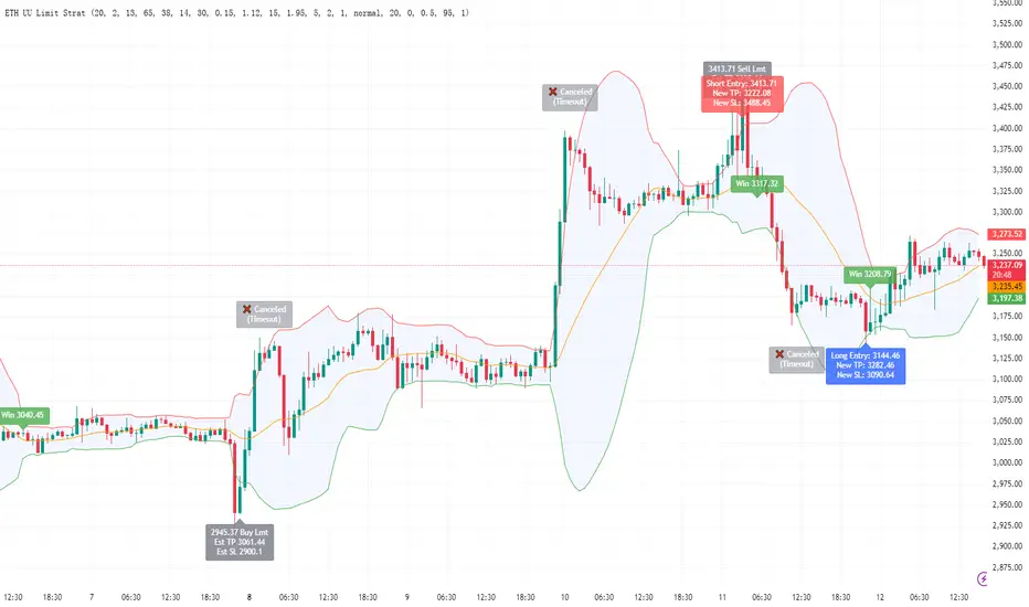 The "ETH UU Reversion Strategy" is a sophisticated mean-reversion trading system designed to capture price reversals at standard deviation extremes. Unlike typical strategies that enter trades immediately at market price, this script employs a proprietary **Limit Order Execution Mechanism** combined with volatility filtering to optimize entry prices and reduce slippage.