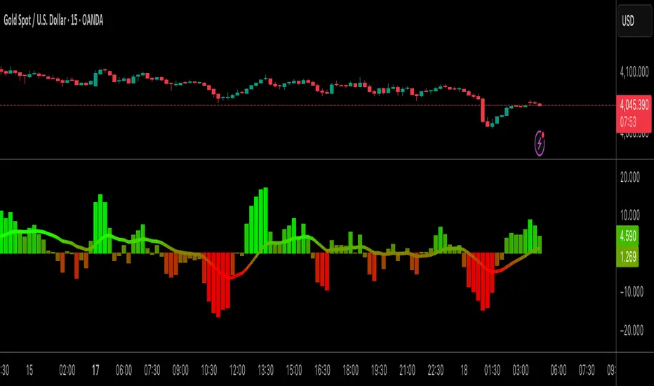 This indicator combines three RSI calculations and transforms their relative differences into a histogram, allowing users to observe shifts in momentum and market character in a structured, visual format. The goal of this tool is to present RSI-based relationships in a way that is easier to interpret compared to individual RSI lines, especially in environments where price moves between trending and ranging behaviour.
