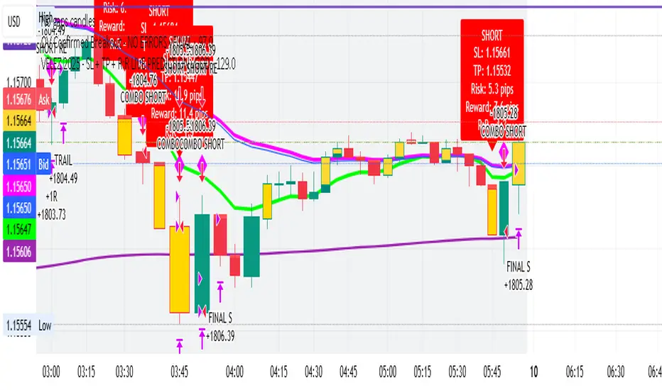 Live Plan: Upon signal, a detailed label is immediately plotted on the chart showing the FULL BATTLE PLAN:
