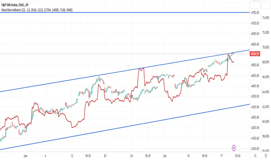 This indicator has a particularly high correlation with the S&P 500. It is clearly leading in some places. I use the indicator on the daily and hourly charts, manually bring the indicator over the S&P chart as best I can and see if the indicator is showing a major breakout ahead that the chart hasn't followed yet. Larger deviations are also a sign that the price is moving too far away from the indicator and that this deviation will probably be closed in the near future. The indicator shows the theoretical course more from the economic side, how the course should run. The deviation is therefore primarily due to the mood. I recommend using the indicator together with others, so as not to rely on this indicator alone.