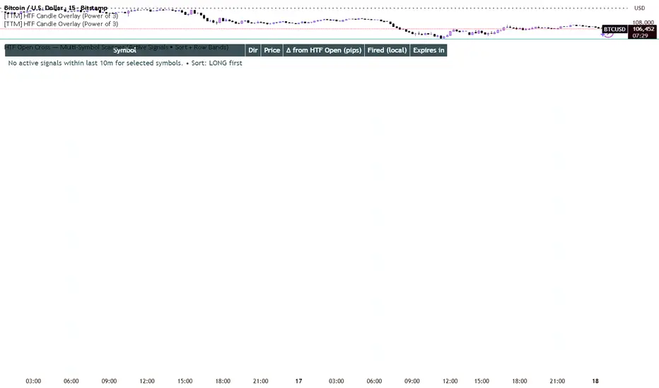 A powerful multi-symbol scanner that detects live momentum shifts when price crosses above or below the higher-timeframe (HTF) open — only confirming when a lower-timeframe (LTF) candle closes beyond the open by a defined pip threshold.