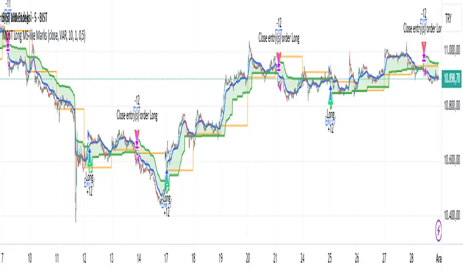 This strategy combines a custom MOST stop-line structure with a moving average trend filter (EMA / VAR / ZLMA), daily pivot levels, and a 9-period VAR filter to generate clean long-only entries.