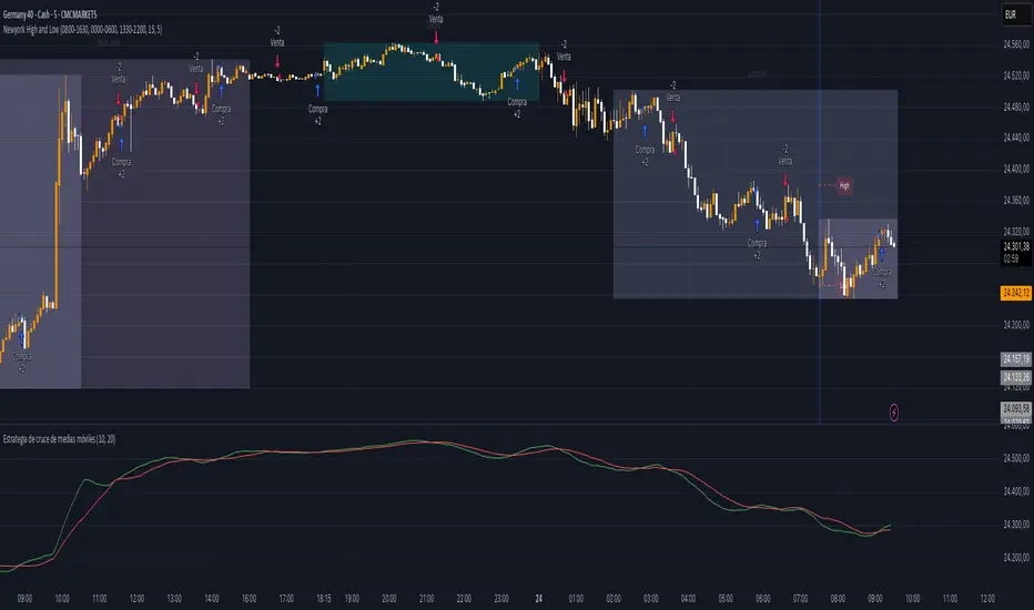 This indicator uses two simple moving averages: a fast and a slow one. It generates a buy signal when the fast MA crosses above the slow MA, and a sell signal when it crosses below. It also closes open positions when the opposite crossover occurs. The moving averages are plotted on the chart for visual reference.