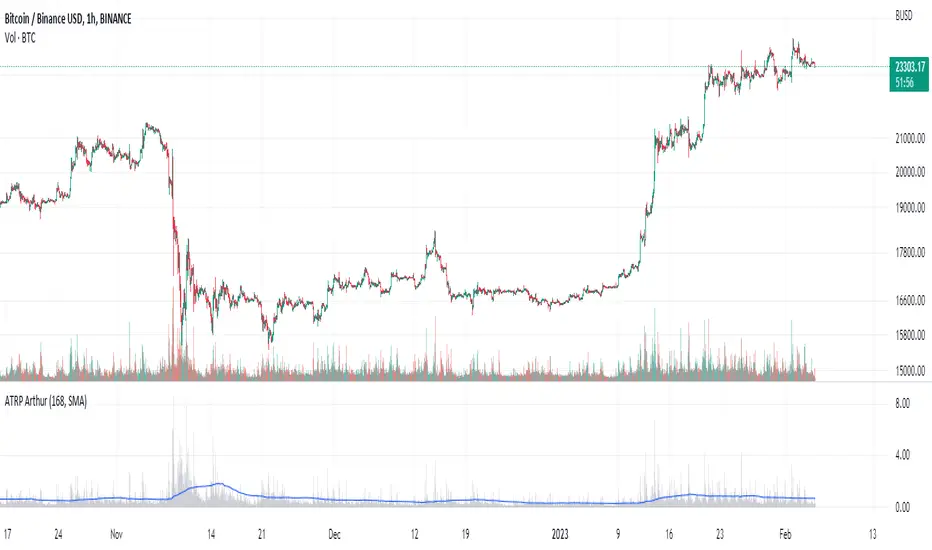 Average True Range Percent (ATRP) measures the true range for the period, converts it to a percentage using the average of the period's range ((high + low) / 2) and then smooths the percentage. The ATRP provides a measure of volatility that is comparable between charts showing their relative volatility.