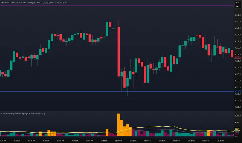 CK: Locked Session H/L + Volume Profile (1m Fixed)