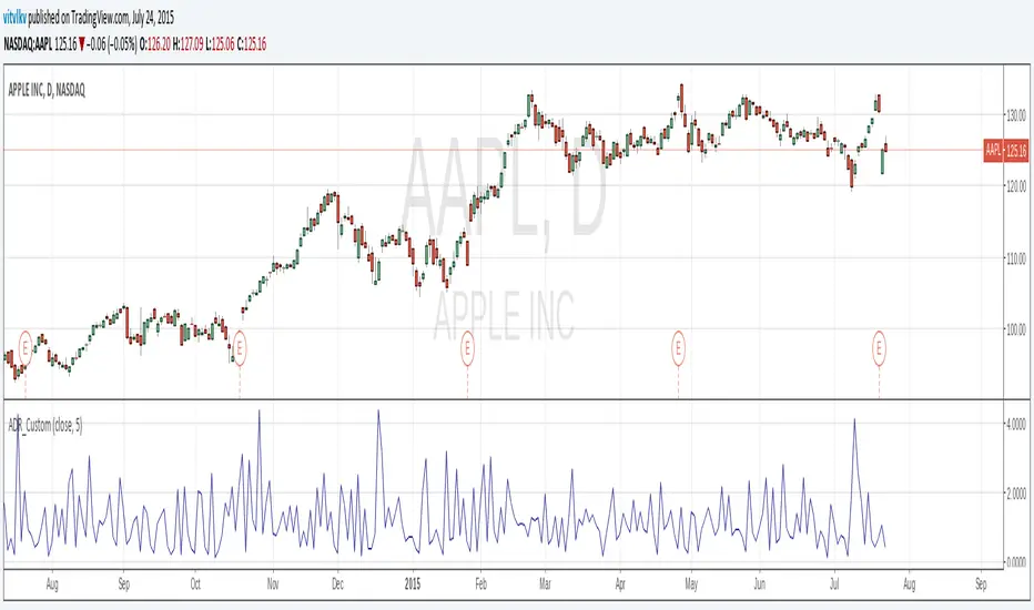 Built-in indicator ADR shows only NYSE data. This script allows you select the exchange to use.