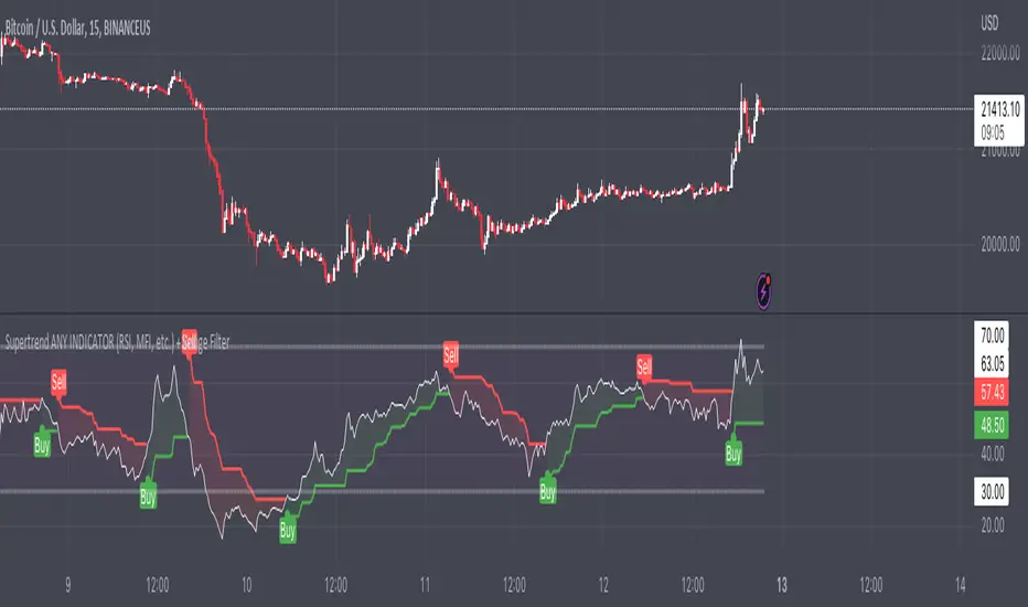 מעודכן Supertrend ANY INDICATOR (RSI, MFI, CCI, etc.) + Range Filter