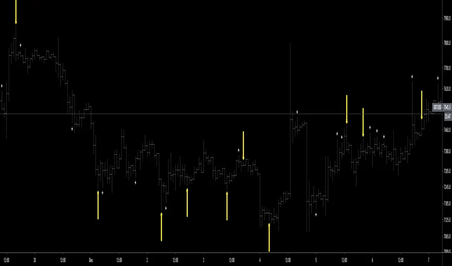Use the input window to tailor the sensitivity of the arrows based on the amount of volatility your chart is experiencing (lower = more sensistive). The most common inputs for me are 8, 13, 21.